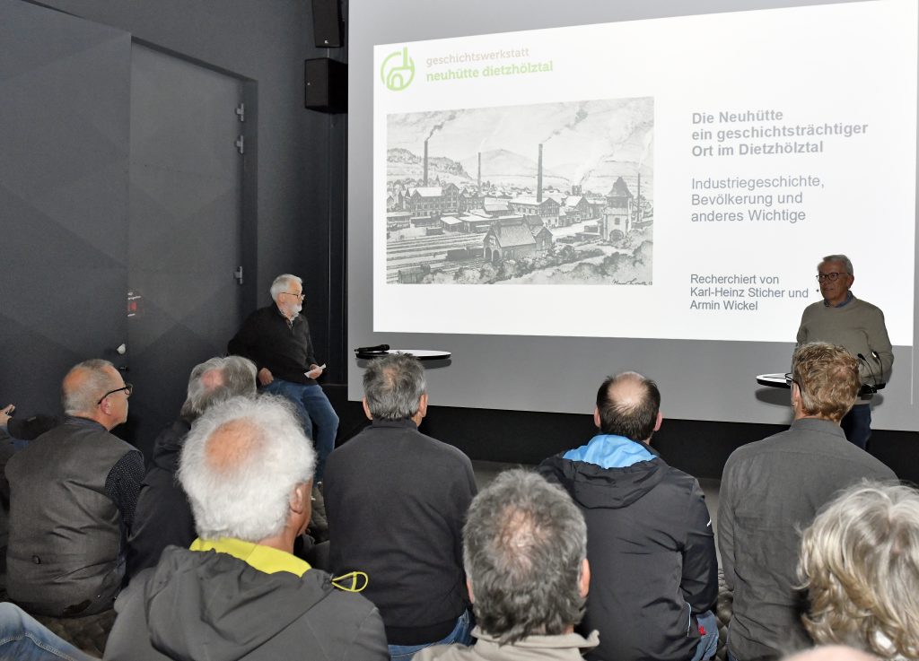 Jetzt berichtete Armin Wickel über die wechselvolle Geschichte der Neuhütte vom 15. bis ins 19. Jahrhundert. Dabei steht „Neuhütte“ sowohl für den Ort als auch für eines der ältesten Hüttenwerke der Lahn-Dill-Region. Zusammen mit Karl-Heinz Sticher hat er intensiv im Hessischen Staatsarchiv, in historischen Kirchenbüchern und Steuerlisten sowie in vielen weiteren Quellen recherchiert und die Entwicklung detailliert aufgezeigt. Dabei fanden beide heraus, dass in Dietzhölztal schon sehr früh Fachkräfte aus ganz Deutschland und z. B. aus Belgien (Wallonen) eingewandert sind und mit ihrem Wissen die heimische Eisenindustrie aufgebaut haben. Rennöfen zur Eisengewinnung wurden im oberen Dietzhölztal schon ab 900 n. Chr. bei Ausgrabungen von